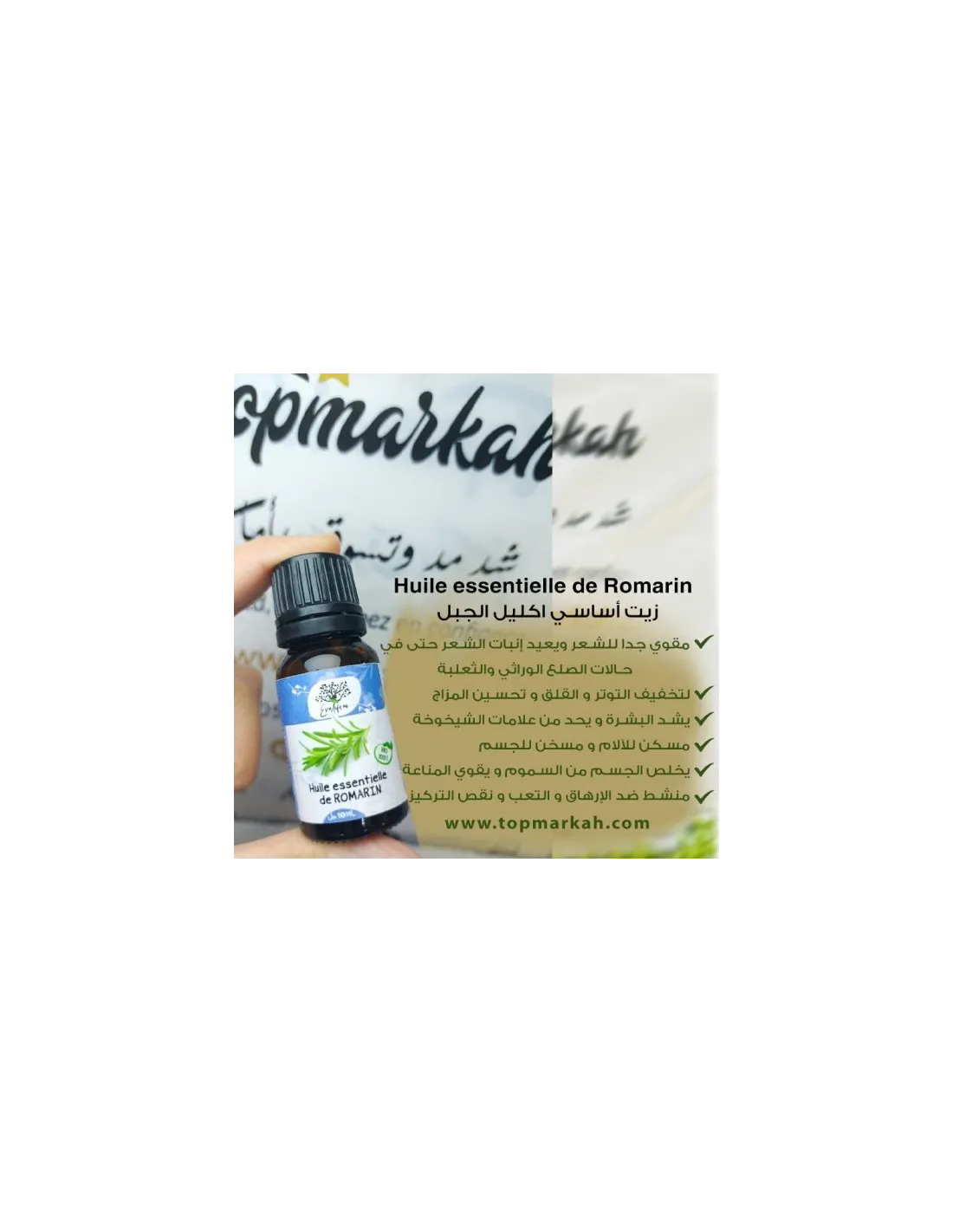 زيت اكليل الجبل المركز 100 % (10 مل) - Huile essentielle de romarin à cinéole